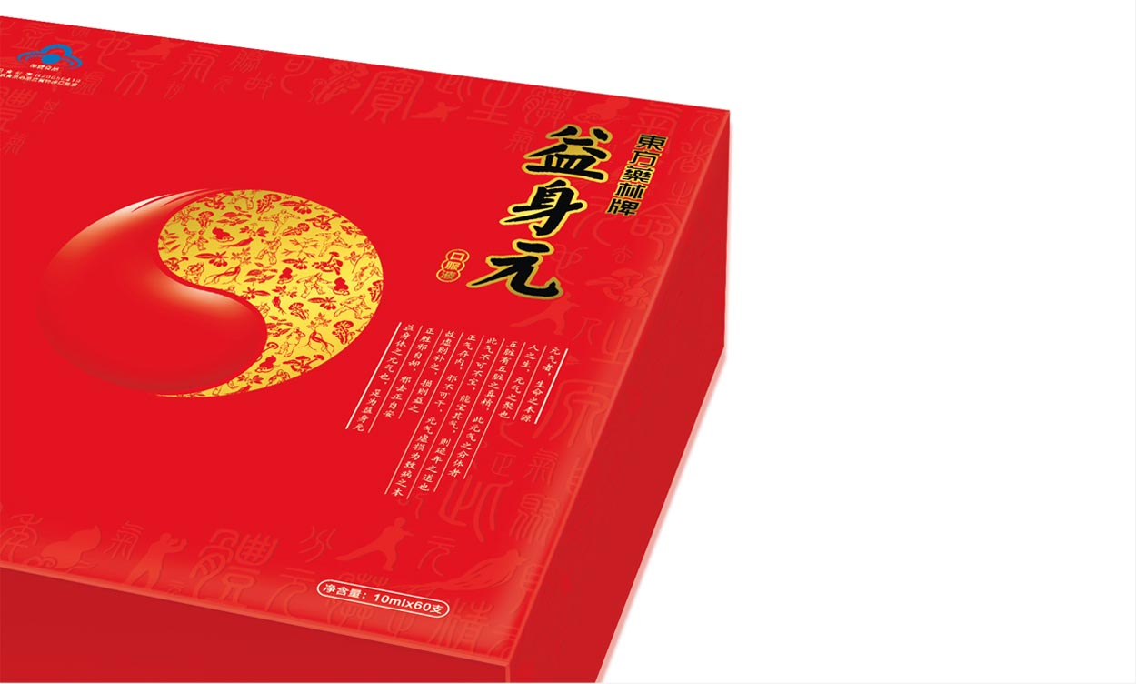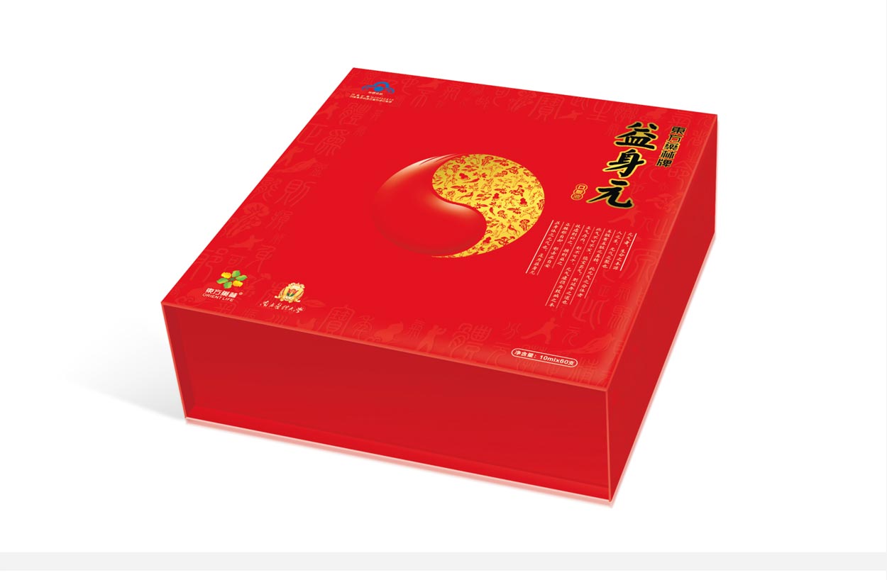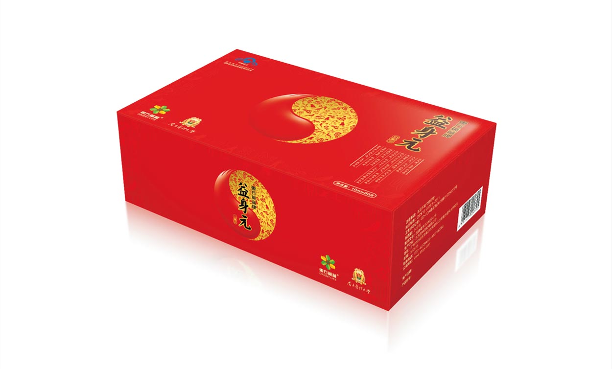 “天圓地方”是古代科學對宇宙的認識。“內(nèi)證”是古人認識宇宙的主要方法,而這種方法是按照人體生命一定的能量循環(huán)模式不斷加強人體自身的能量,從而達到超越普通大眾的感知能力。所以我們在禮盒的設計上應用這種文化理念,外在方正,內(nèi)里圓潤,符合中國人的審美觀念,不斷通過這種能量的循環(huán)而增強人體的健康能量,也體現(xiàn)益身元的保健品的定位。