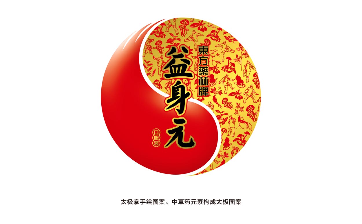 采用正紅色作為包裝的主色,體現(xiàn)了產(chǎn)品的的健康、活力的形象,而且更符合中國傳統(tǒng)文化的審美觀。在包裝上,為了呼應“天圓地方”“太極”的形象設計,在正紅包裝的背景上,加上了“太極人”“分解漢字”的剪影,相映成輝。