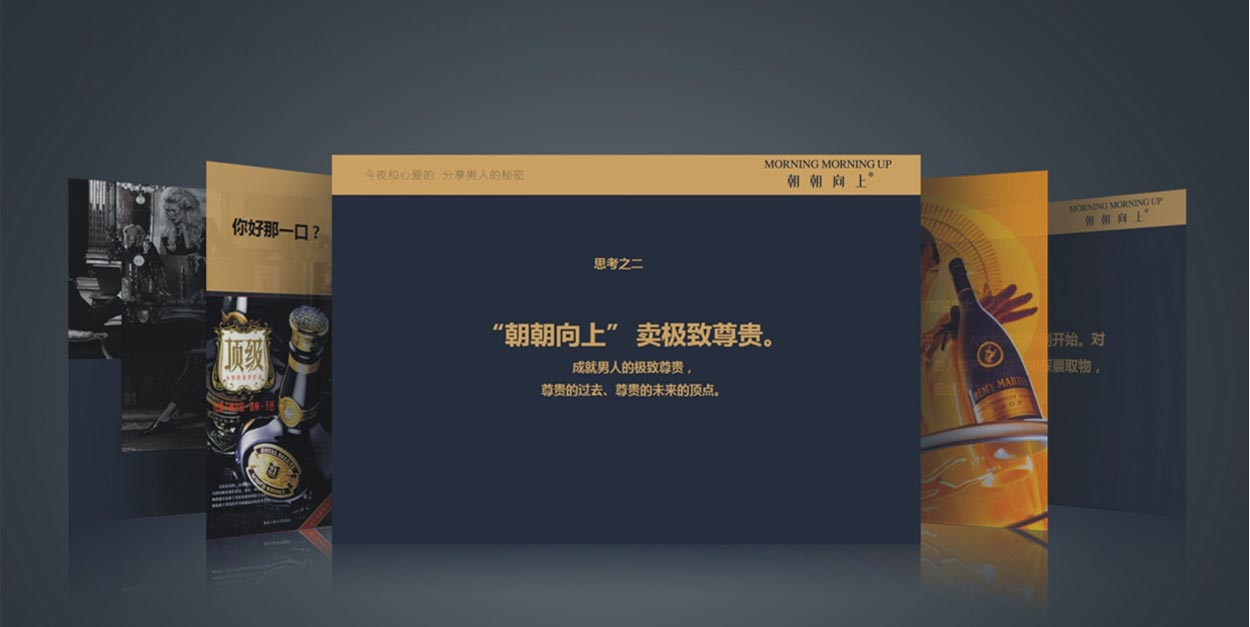 朝朝向上酒的推出,正好可以迎合市場(chǎng)的強(qiáng)烈需求。洋酒超越了白酒和紅酒的品味,已經(jīng)成為中國(guó)高層政商人士品質(zhì)體驗(yàn)的代表。縱觀養(yǎng)生酒行業(yè),中低端的養(yǎng)生酒占多數(shù),高端酒卻是少之又少,所以我們把“朝朝向上”定位在高端酒,成為難得的高級(jí)品,則更容易在市場(chǎng)突圍而出。