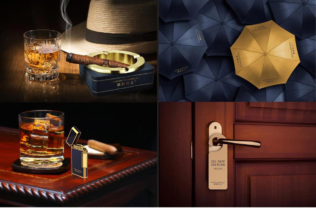 不僅是對(duì)文字的重新設(shè)計(jì),我們還對(duì)品牌的色彩進(jìn)行提升。因?yàn)?ldquo;朝朝向上”是一款面向中高端成功人士的養(yǎng)生酒,擁有洋酒的奢華尊貴的品質(zhì),所以我們選擇尊貴藍(lán)作為主色調(diào),幽暗迷人的尊貴藍(lán)讓人聯(lián)想到優(yōu)雅安靜的酒吧,尊貴的男士正細(xì)細(xì)品味這懂男人的酒——“朝朝向上”,彰顯尊貴、神秘、浪漫、魅惑的格調(diào)。