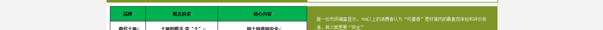 “藏于深山”,強(qiáng)調(diào)產(chǎn)品的原生態(tài)養(yǎng)殖環(huán)境,體現(xiàn)產(chǎn)品的綠色、健康、安全; “夠野夠香”,緊扣消費(fèi)者需求,直白的說出產(chǎn)品的特點(diǎn)和黑加寶豬肉的不同,我們的豬肉就是最野的,就是最香的,賣點(diǎn)明確;