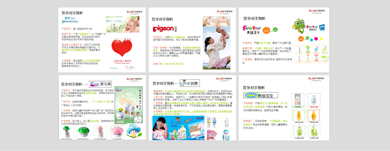 兒童用品領(lǐng)域聚集了強(qiáng)生、貝親等強(qiáng)勢(shì)品牌,低價(jià)位同質(zhì)化競(jìng)爭(zhēng)異常激烈!一些品牌欲放棄嬰兒市場(chǎng)專攻兒童市場(chǎng),不過(guò)目前市場(chǎng)上還沒(méi)有兒童專用的強(qiáng)勢(shì)領(lǐng)導(dǎo)品牌。各大兒童品牌賣點(diǎn)都集中在“呵護(hù),關(guān)愛(ài)孩子”上作文章,大打親情牌,從情感上感染具有購(gòu)買決策者無(wú)疑是一種成功的模式,不過(guò),缺少的是創(chuàng)新與突破。“自然可靠”極具號(hào)召力,但是缺乏強(qiáng)勢(shì)植物草本品牌。眾兒童品牌都意識(shí)到了植物的號(hào)召力,但產(chǎn)品又多是化工合成產(chǎn)品,對(duì)“天然、綠色”的品牌形象有所回避只是在產(chǎn)品或產(chǎn)品系列上有所關(guān)聯(lián),缺乏田七草本、佰草集這樣的草本品牌。