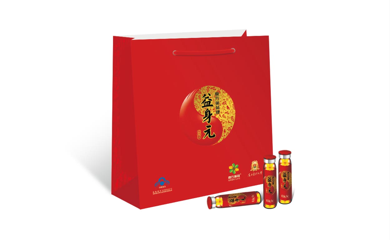 “天圓地方”是古代科學對宇宙的認識。“內(nèi)證”是古人認識宇宙的主要方法,而這種方法是按照人體生命一定的能量循環(huán)模式不斷加強人體自身的能量,從而達到超越普通大眾的感知能力。所以我們在禮盒的設計上應用這種文化理念,外在方正,內(nèi)里圓潤,符合中國人的審美觀念,不斷通過這種能量的循環(huán)而增強人體的健康能量,也體現(xiàn)益身元的保健品的定位。